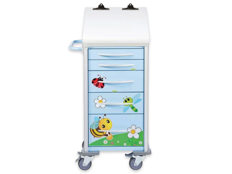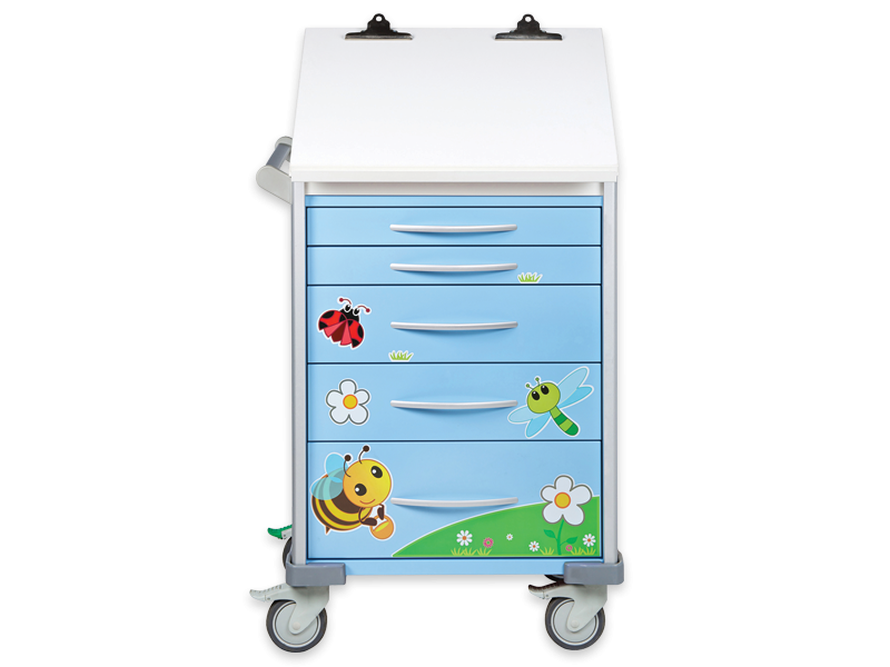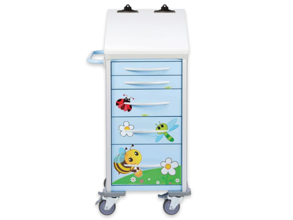A popular option on children's wards and PICUs, our paediatric chart trolleys help to maintain a child-friendly atmosphere, while meeting NHS staff needs. These space-saving mobile storage trolleys with integrated chart boards provide an effective solution for maintaining patient records at the bed/cot end.